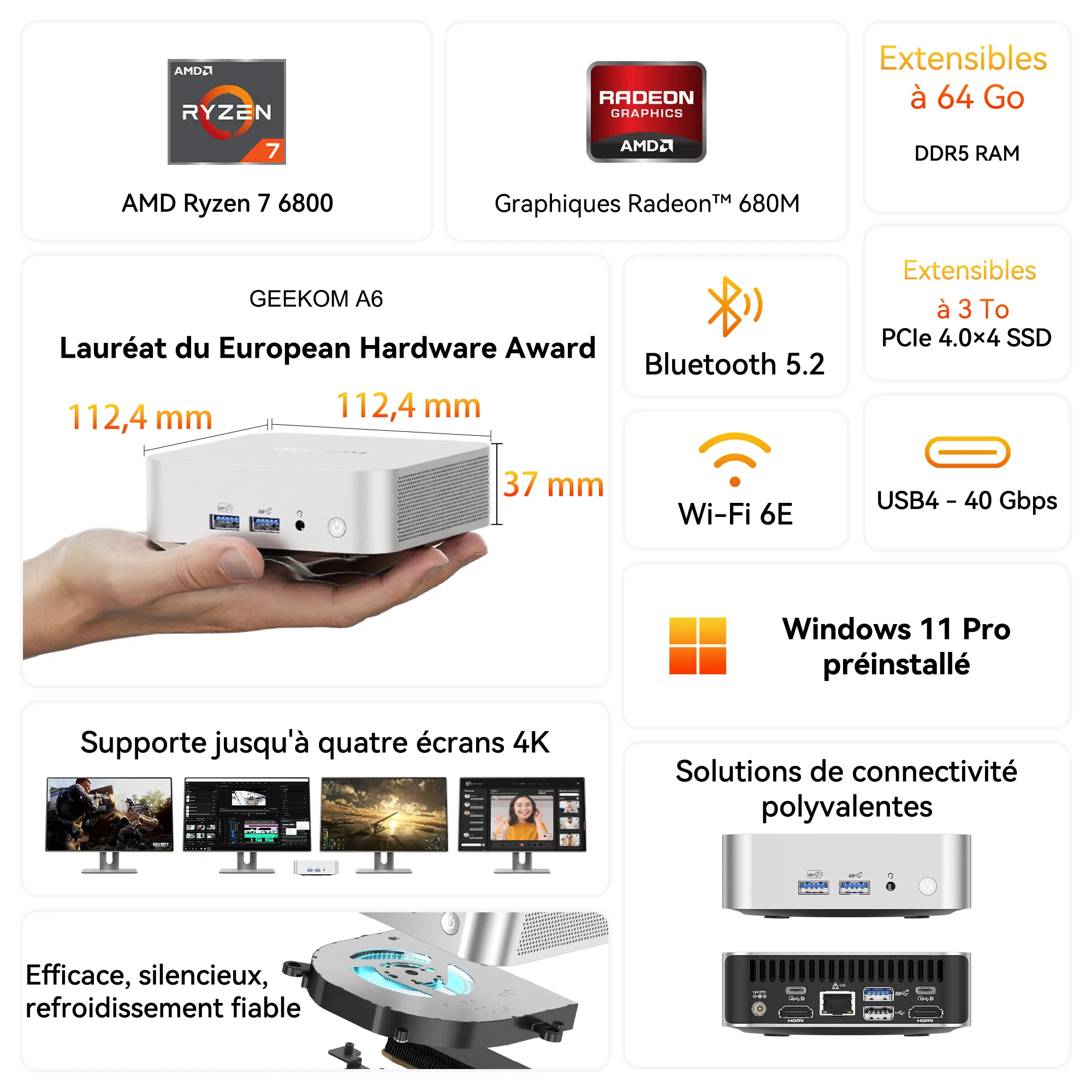- 🏆 Lauréat du European Hardware Award – Meilleur Mini PC milieu de gamme.