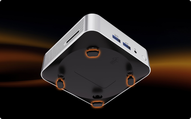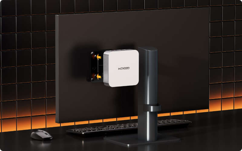 Elle prend en charge la fixation VESA standard, vous permettant d'installer facilement le mini PC derrière votre moniteur, pour gagner de l'espace, réduire l'encombrement et créer un espace de travail plus épuré et plus efficace.