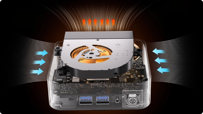 - Refroidissement IceBlast 2.0 – Maîtrise totale des 55 W TDP sans surchauffe, avec un silence absolu < 45 dB.