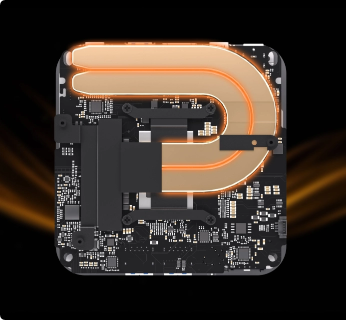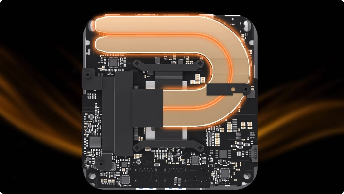 Refroidissement de précision là où c'est essentiel. Une plaque de refroidissement en cuivre séparée cible directement le CPU, assurant un contrôle thermique ciblé et prévenant toute limitation de puissance.