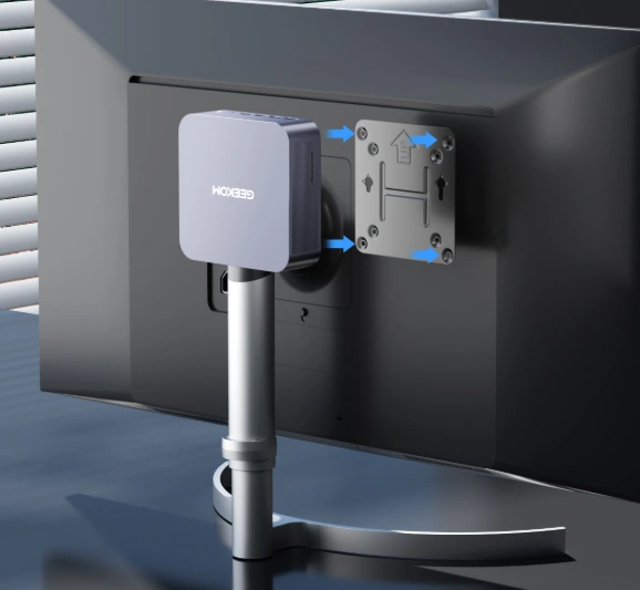 Conçu pour une installation polyvalente — fixez votre appareil derrière un écran, sous un bureau ou au mur pour optimiser l'espace et créer un environnement épuré et organisé.