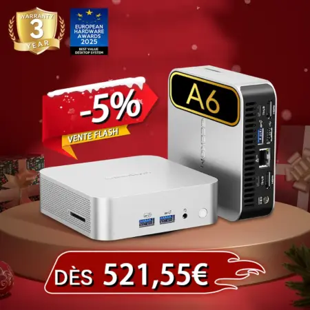 Profitez de la vitesse et de la fiabilité d’un Mini PC GEEKOM doté d’un SSD de 256 Go. Ce type de stockage offre des temps de démarrage quasi instantanés, une réactivité fluide pour toutes vos tâches quotidiennes, et une meilleure durabilité qu’un disque dur classique. Que ce soit pour un usage professionnel, personnel ou multimédia, nos Mini PC avec SSD sont conçus pour répondre aux attentes des utilisateurs exigeants, tout en gardant un format compact, silencieux et écoénergétique.