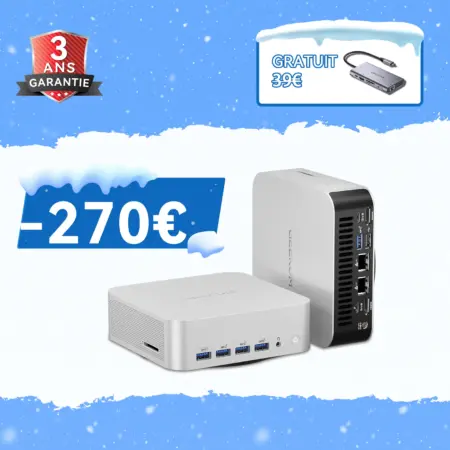 Évidemment, un mini PC n’a pas tout. Il n’a pas toujours de système de refroidissement très puissant, ni de batterie, ni d’accessoires comme la souris ou le clavier. Mais pas d’inquiétude : on peut ajouter tout cela grâce au Bluetooth, ou bien acheter un pack complet d’accessoires.