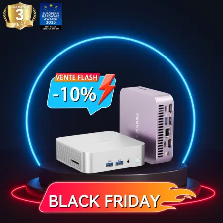 Si vous êtes à la recherche d’un mini PC compact et puissant, pensez au GEEKOM Mini IT13 qui est aussi parfait en tant qu’un PC gamer. Il est équipé du processeur Intel Core de 13e génération le plus récent, i9-13900H ou i7-13620H. Le Mini IT13 est efficace pour les tâches énergivores comme les jeux ou la création de contenu.